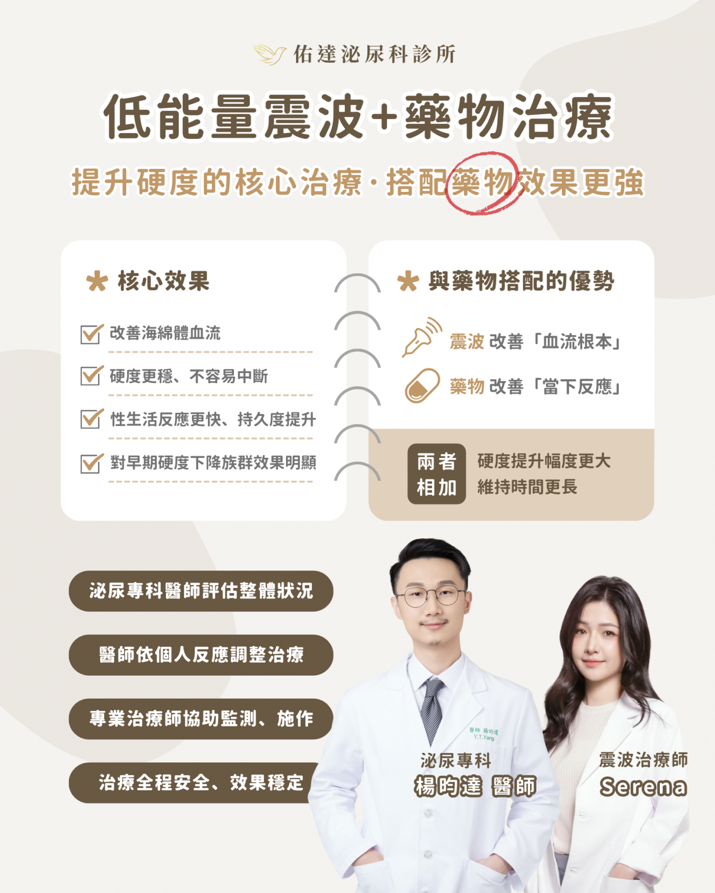 ,由泌尿科醫師為你規劃:低能量震波、藥物治療、與必要時的睪固酮補充追蹤。